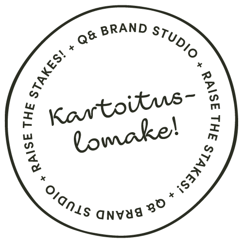 Brändityöpajan jälkeen lähdemme tutkimaan luovaa suuntaa brändillesi ja luomme ehdotuksen tutkimustyön tuloksien perusteella.